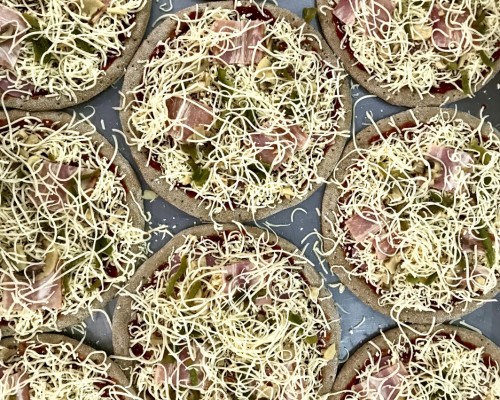Στολίστε με τα υλικά της επιλογής σας, ψήστε τις πίτσες σε καλά προθερμασμένο φούρνο για 7-10 λεπτά και προσθέστε φρέσκα λαχανικά & μυρωδικά, όπως για παράδειγμα ρόκα ή φρέσκο βασιλικό πριν το σερβίρισμα, για μια ακόμα πιο ιδιαίτερη γευστική εμπειρία.